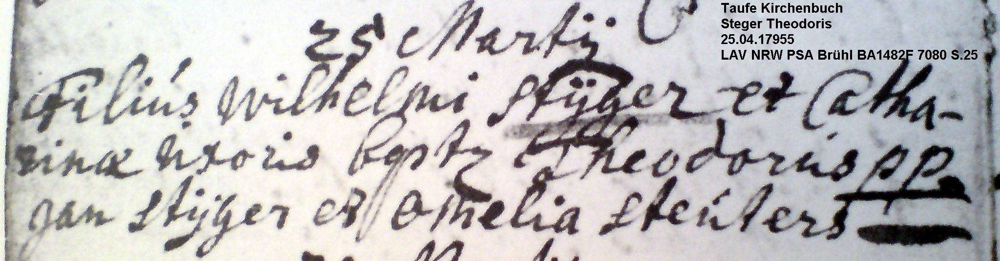 (Diese Schreibweise findet sich im ältesten Kirchenbucheintrag zur Taufe von Theodorus Stÿger aus dem Jahre 1714.)