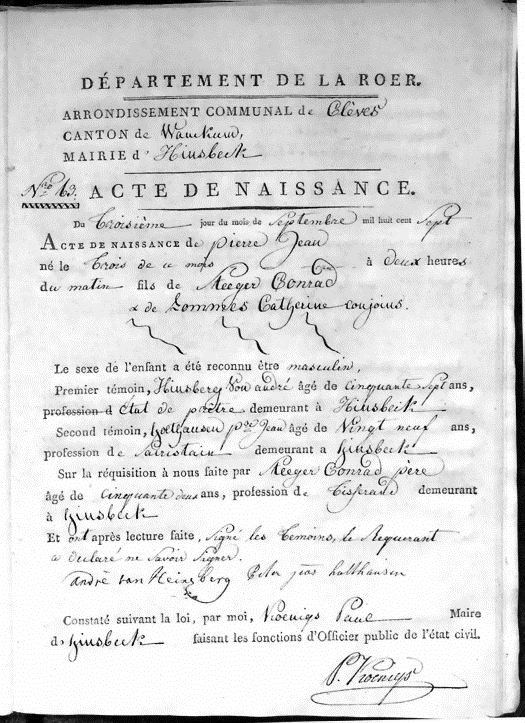 Genealogische Zusammenstellung der Familie Steger vom linken Niederrhein